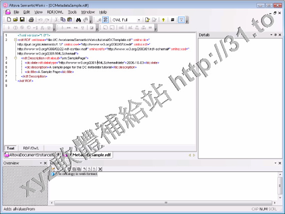 實例文檔,詞彙表等,然後以RDF/XML或者N-triples 格式輸出。SemanticWorks使得這變