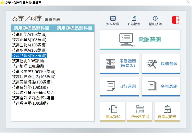 111學年下學期 技術高中命題光碟 泰宇版 化學+生物+物理+歷史+地理+公民與社會+法律與生活+商業概論+會計學+經濟學(108課綱)題庫光碟