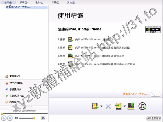 快速且便利地於電腦與iPadiPhoneiPod間傳送音樂、影片、照片或者是電子書軟體