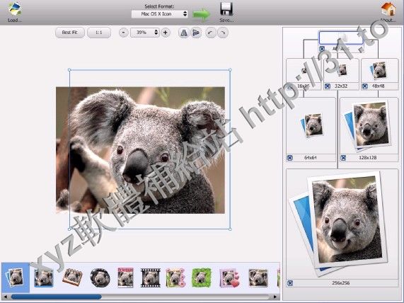 它支援Windows Vista的alpha通道256x256圖示和Mac OS X的新Leopard 256x256 圖示。該