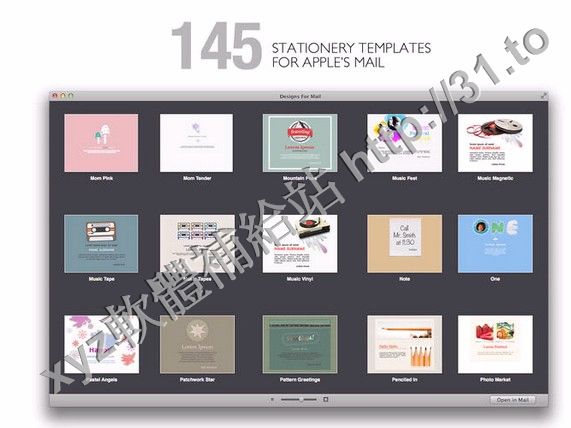 Designs For Mail for Mac是一個很好的Apple Mail信紙模板套件。它擁有145款設計
