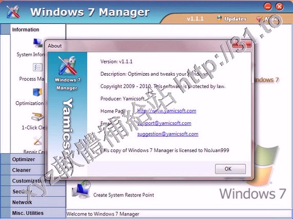 Yamicsoft Windows 7 Manager v4.0.4 英文正式版(Widnows7 總管是優化和設置軟體)