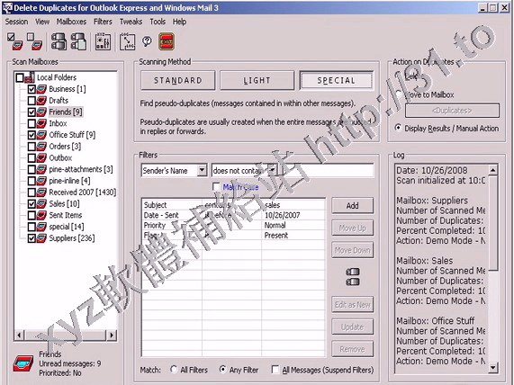 郵件頭,還有附件進行比較,刪除重複的郵件,同時也可以使用過濾條件進行清理任務